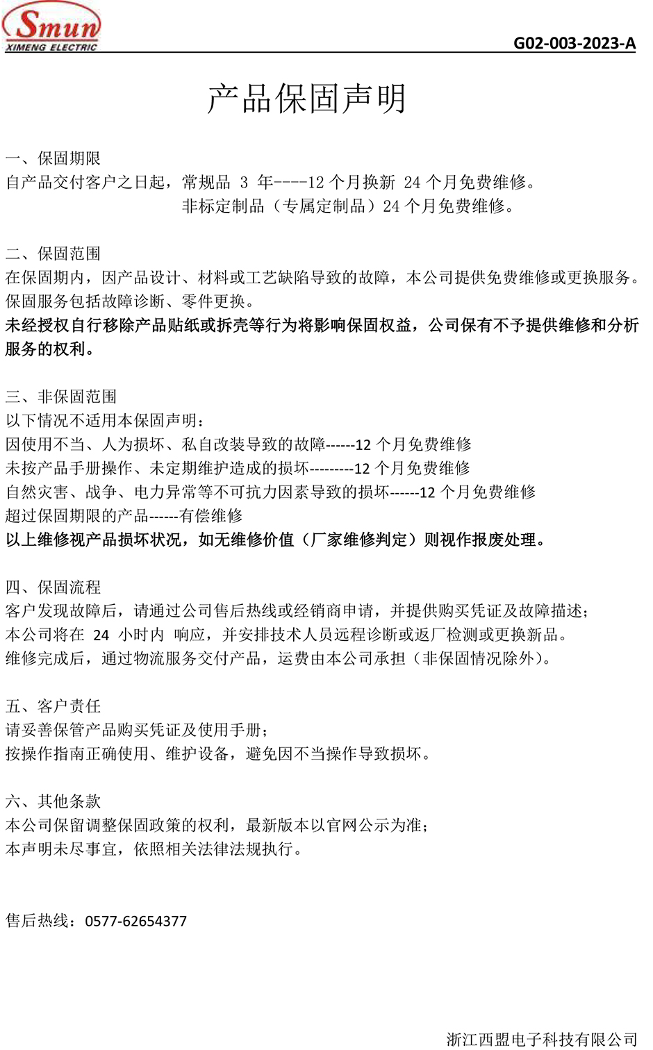 产品保固声明