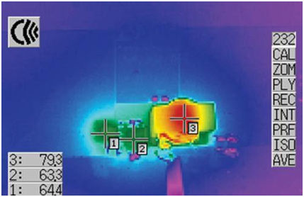 不同工作模式的效率如图 3 所示。在 12V 输入电压时,满负载效率高达 90.3%。与采用 1mΩ 采样电阻器和具备相同功率级设计的电源相比,这大约改善了 1.4%。在没有任何空气流动时,热点 (底部 MOSFET) 的温度仅上升 39.6°C (如图 4 所示)。在这张图中,环境温度大约为 23.8°C。EFFICIENCY:效率