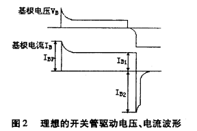 开关管的损耗与其基极的驱动电压、电流的波形有直接的关系,理想的基极驱动波形如图2所示。