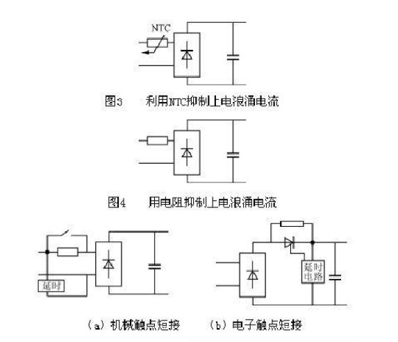 浪涌会形成电源电压波形陷落,使得供电质量变差,甚至会影响其他用电设备的作业以及使保护电路动作;因为浪涌冲击整流器的输入熔断器,使其在若干次上电进程的浪涌冲击下而非过载熔断。为避免这类现象发生,而不得不选用更高额定电流的熔断器,但将呈现过载时熔断器不能熔断,起不到保护整流器及用电电路的效果;过高的上电浪涌对整流器和滤波电容器形成不可康复的损坏。因而,有必要对带有电容滤波的整流器输入浪涌加以约束。
