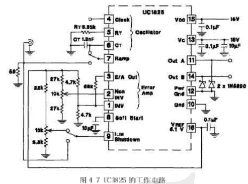 根据我们所设计的开关电源系统的要求,我们选的PWM集成控制器为UC3825。下面将详细介绍此芯片的主要特点、工作原理和应用及调试。