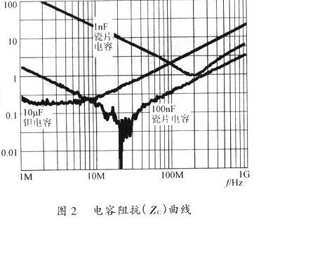 图2是电容器在不同作业频率下的阻抗(Zc)。