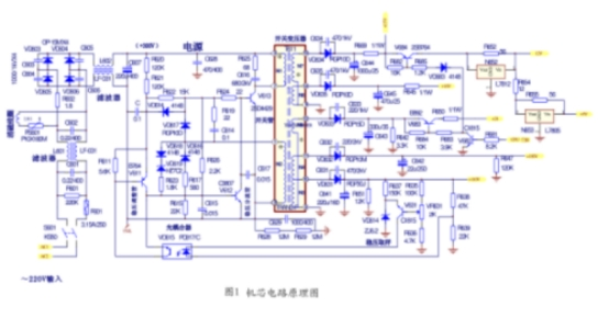 机芯的开关电源具有结构简略,经济实用等特点,是彩色电视机用得最多的一种开关电源,广泛用于新式数码彩电中。目前康佳、长虹、海信、厦华等品牌彩电,均有许多机型使用了这一电源。本文以A25机芯为例,来分析这种开关电源的作业进程及检修方法,具体电路见图1。