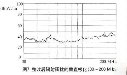并且为了减少因变压器侧注册时电流瞬间骤变发生的di/dt搅扰,在变压器T1的 侧串进1个电感,以减小器材的注册损耗,下降辐射搅扰信号。通过整改后,辐射搅扰大大下降,再次对本电源辐射搅扰进行测验,彻底达到了规范要求,其测验成果如图7所示。