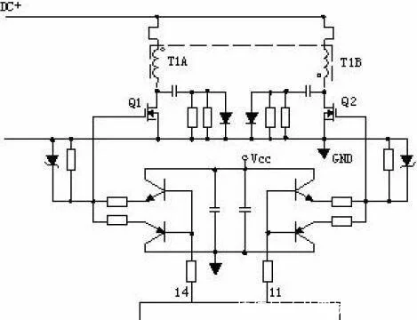 2、 推挽式功率改换电路: Q1和Q2将轮番导通。